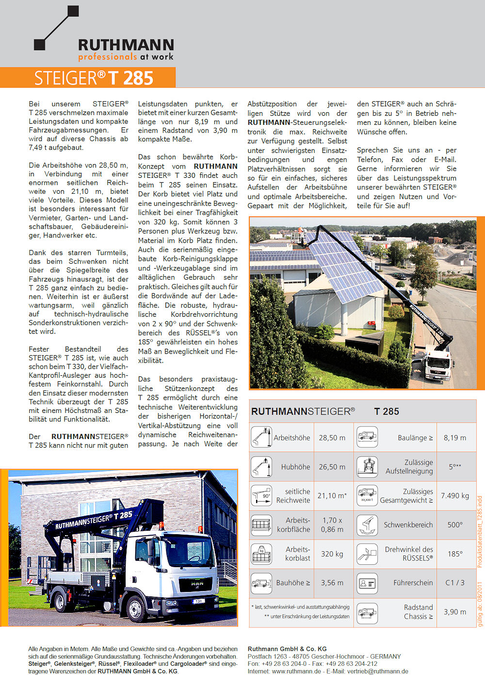Miet Arbeitsbühne - Datenblatt Ruthmann Steiger TBR 220